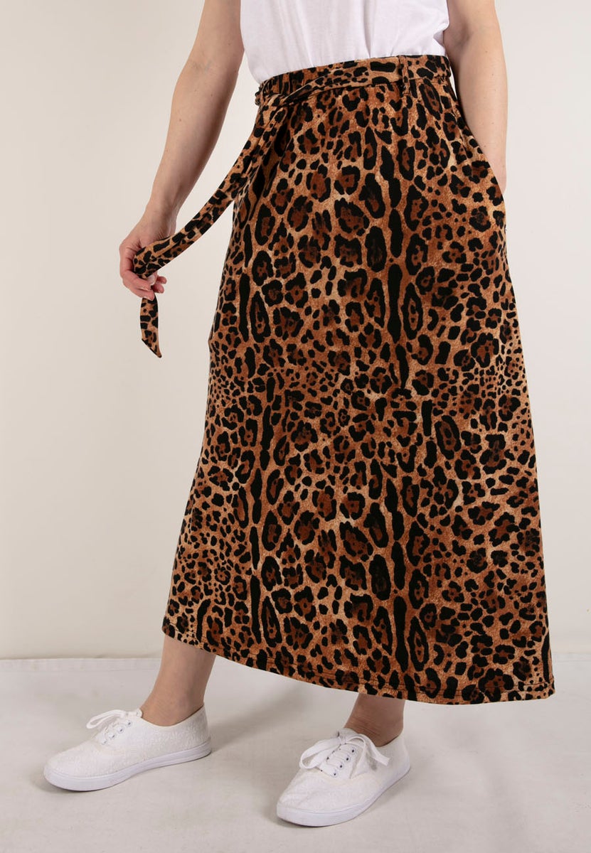 Tyylikäs ja monikäyttöinen leopardikuvioinen hame, joka yhdistää mukavuuden ja näyttävyyden. Ajaton leopardi-kuosi tuo asuun rohkeaa ilmettä, ja joustava vyötärö tekee hameesta miellyttävän käyttää koko päivän ajan.